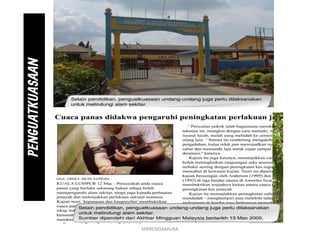 Suhu bumi telah meningkat 12 C darjah dan kadarnya berbeza mengikut benua dan kawasan. Sesungguhnya kegiatan sukan dapat melancarkan perjalanan darah mengurangkan lemak yang berlebihan dalam salur darah dan jantung membantu perkumuhan dan membuang sisa-sisa yang tidak diperlukan oleh badan. Diskusikan bersama kelompokmu halhal berikut.